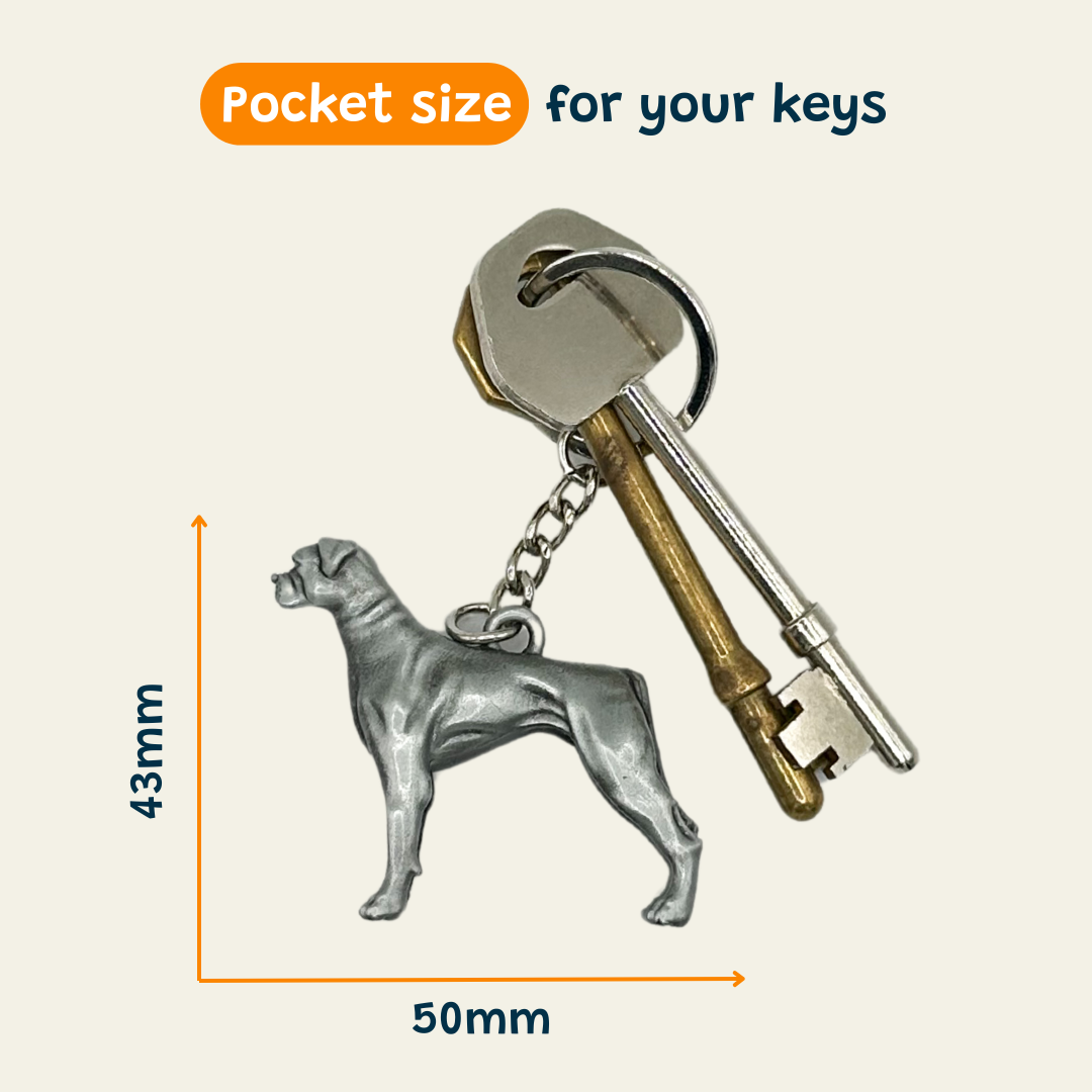Celebrate your love for Boxers with this beautifully crafted pewter keyring. Designed with intricate detail, it captures the playful and loyal spirit of the Boxer. Durable yet lightweight, it’s a stylish and practical keepsake for any dog lover.